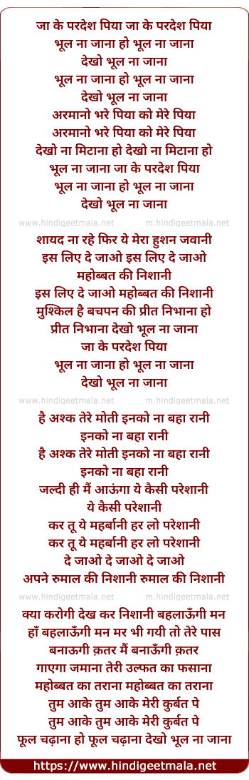 Lyrics of Jaa Ke Pardes Piya - जा के परदेश पिया जा के परदेश पिया