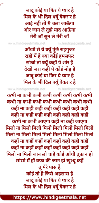 Lyrics of Jaadu - जादू कोई या फिर ये प्यार है