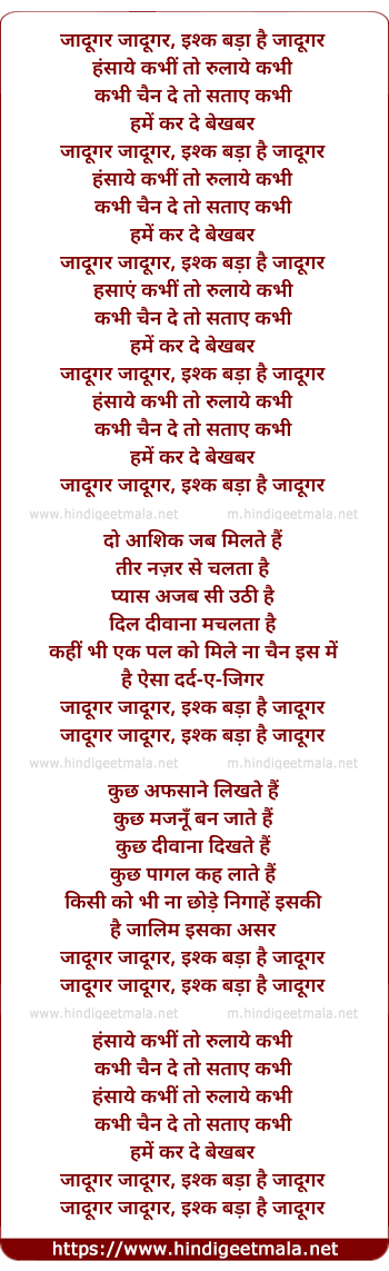 Lyrics of Jaadugar Jaadugar, Hasaye Kabhi - जादूगर जादूगर, हंसाये कभीं