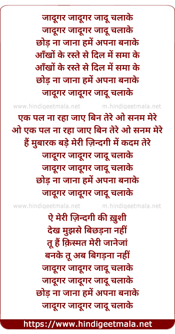 Poetic Translation - Lyrics of Jaadugar Jaadugar Jaaduu Chalake (Female) - जादूगर जादूगर जादू चलाके