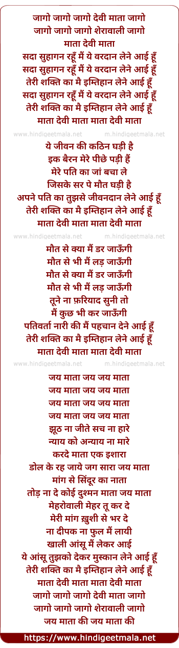 Lyrics of Jaago Jaago Jaago Devi Maata Jaago - जागो जागो जागो देवी माता जागो