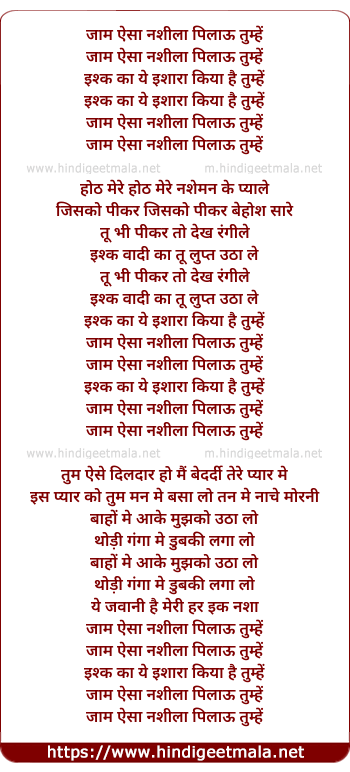Lyrics of Jaam Aisa Nashila - जाम ऐसा नशीला