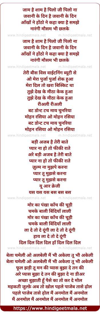 pahle pejaba tase dol mai anmol mai anmol