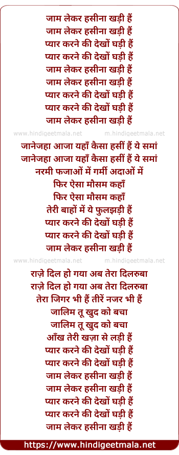Lyrics of Jaam Lekar Hasina Khadi Hai - जाम लेकर हसीना खड़ी हैं