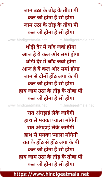 Lyrics of Jaam Utha Ke Tod Ke - जाम उठा के तोड़ के