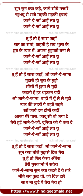 Lyrics of Jaan E Jaan - सुन सुन क्या कहे, जागे सोये नजारें