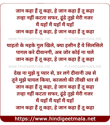 Lyrics of Jaan Kahan Hai Tuu - जान कहा हैं तू