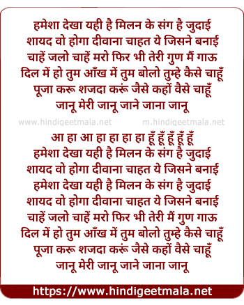 Lyrics of Jaan Meri Jaanu - जान मेरी जानू