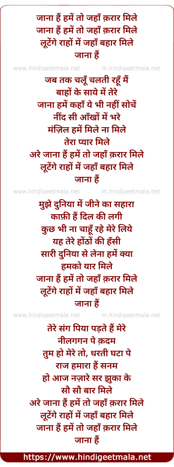 Lyrics of Jana Hai Hame To Jaha Karar Mile - जाना हैं हमें तो जहाँ क़रार मिले
