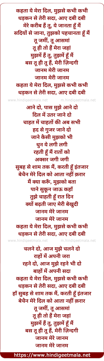 Lyrics of Jaanam (Duet) - कहता ये मेरा दिल, मुझसे कभी कभी