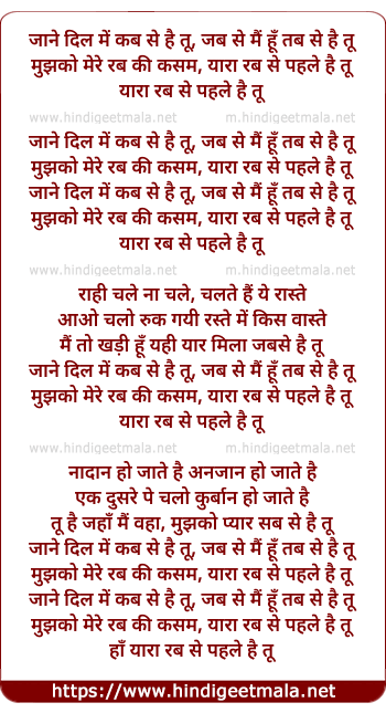 Lyrics of Jaane Dil Mein Kab Se Hai Tu - जाने दिल में कब से है तू