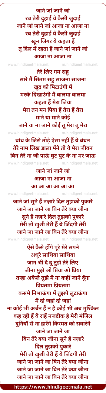 Lyrics of Jaane Jaa Jaane Jaa - जाने जां जाने जां