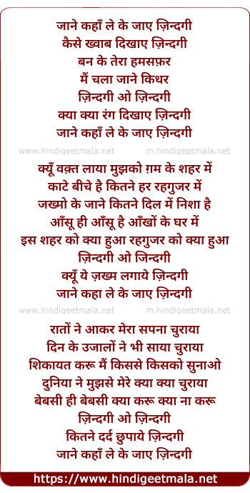 jaane kahan le ke jaaye zindagi