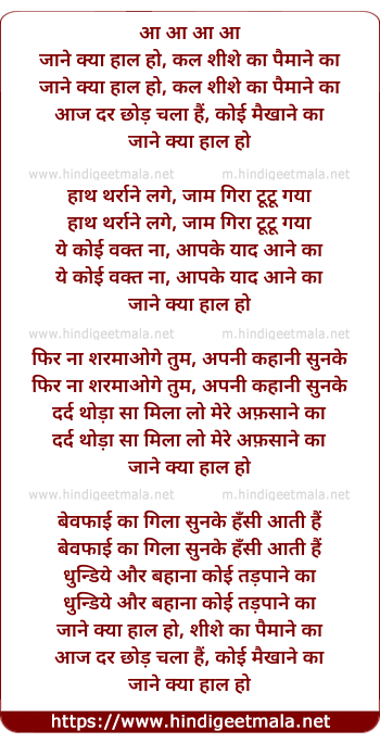 Lyrics of Jaane Kya Haal Ho - आ आ आ आ