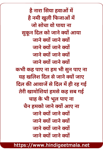 Lyrics of Jaane Kyun - जाने क्यूँ