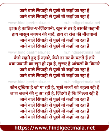 Lyrics of Jaane Vaale Sipahi Se Puchho Vo Kahaan Jaa Rahaa Hai - जाने वाले सिपाही से पूछो वो कहाँ जा रहा है