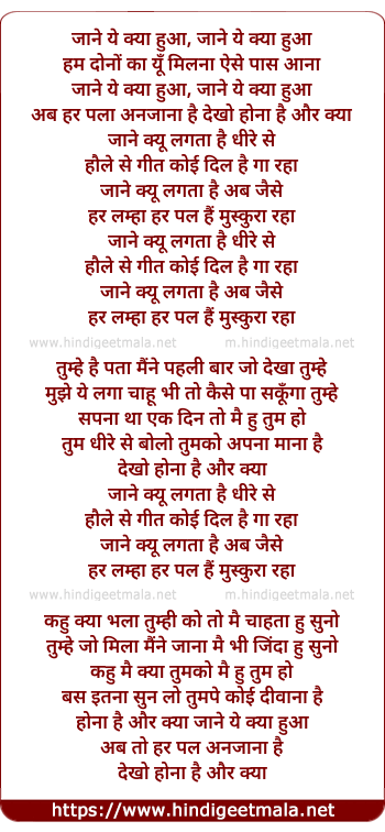 Lyrics of Jane Ye Kya Hua - जाने ये क्या हुआ