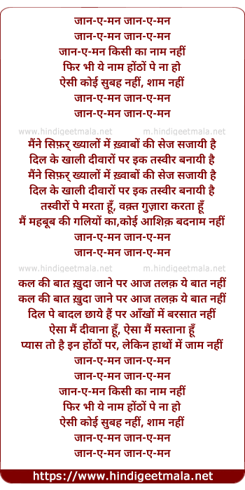 Lyrics of Jaaneman, Jaaneman - जानेमन, जानेमन