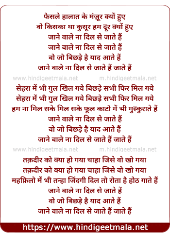 Lyrics of Jane Vale Na Dil Se Jate Hai Jate Hai - जाने वाले ना दिल से जाते हैं जाते हैं