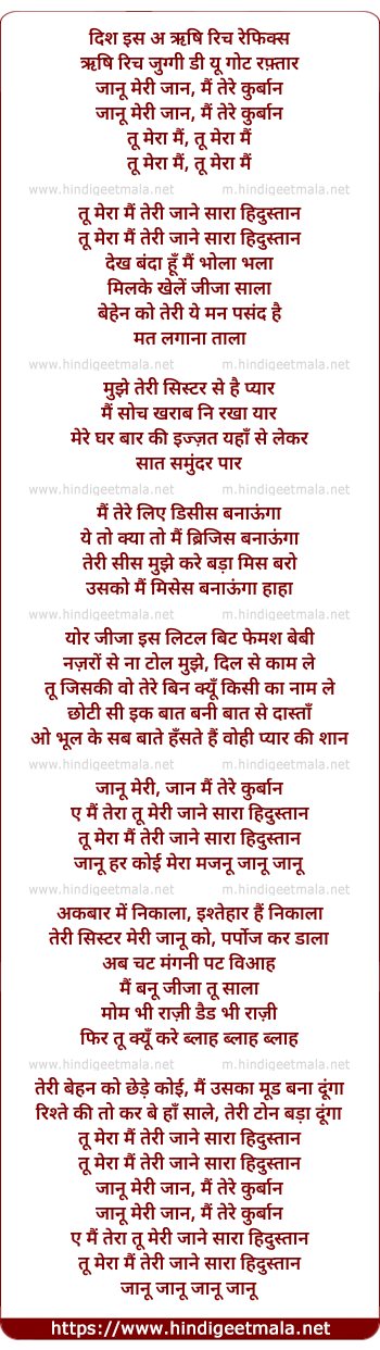 Lyrics of Jaanu Meri Jaan Main Tere Qurban - जानू मेरी जा मैं तेरे कुर्बान