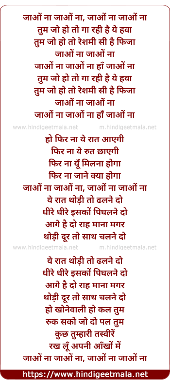 Lyrics of Jaao Na Jaao Na - जाओं ना जाओं ना