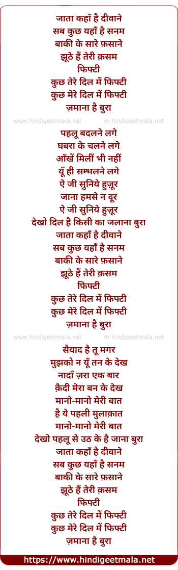 Lyrics of Jata Kahan Hai Diwane, Sab Kuchh Yahaan Hai Sanam - जाता कहाँ है दीवाने, सब कुछ यहाँ है सनम