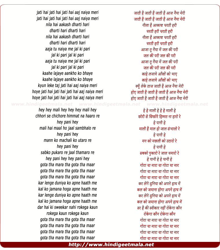Lyrics of Jaati Hai, Jaati Hai Aaj Naiya Meri - जाती है, जाती है आज नैया मेरी