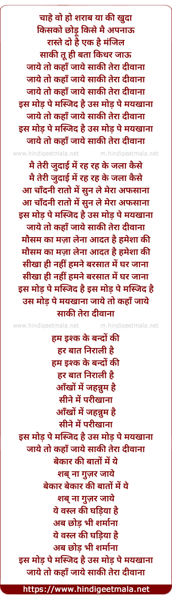 Lyrics of Jaaye To Kahan Jaaye Saaqi Tera Diwana - चाहे वो हो शराब या की खुदा
