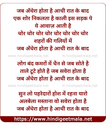 Lyrics of Jab Andhera Hota Hai Aadhi Raat Ke Bad - जब अँधेरा होता है आधी रात के बाद
