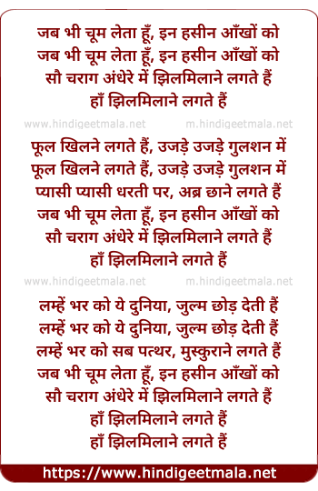 Lyrics of Jab Bhee Chum Leta Hu Inn Hasin Aakho Ko - जब भी चूम लेता हूँ, इन हसीन आँखों को