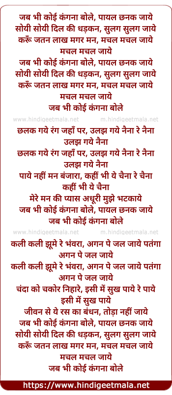 Lyrics of Jab Bhi Koi Kangana Bole, Paayal Chhanak Jaaye - जब भी कोई कंगना बोले, पायल छनक जाये