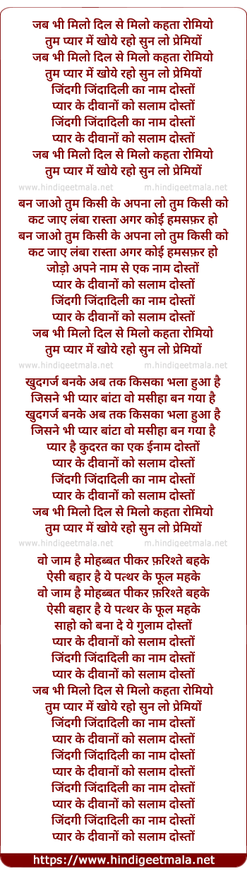 Lyrics of Jab Bhi Milo Dil Se Milo - जब भी मिलो दिल से मिलो