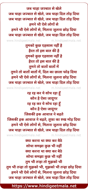 Lyrics of Jab Chaha Jazbaat - जब चाहा जज्बात से खेले