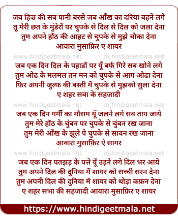 Lyrics of Jab Hizr Ki Shab Paani Barse - जब हिज्र की सब पानी बरसे