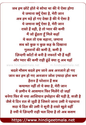 Lyrics of Jab Hum Chhote Hote The - जब हम छोटे होते थे सोचा था की ये ऐसा होगा