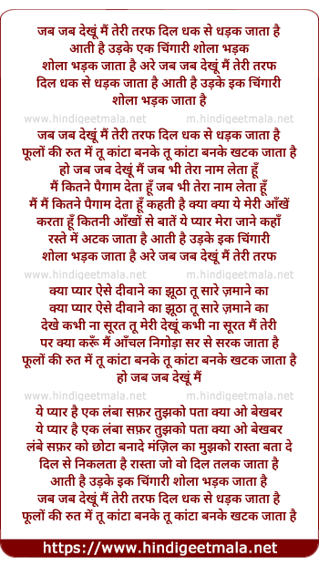 Lyrics of Jab Jab Dekhu Mai Teri Taraf - जब जब देखूं मैं तेरी तरफ