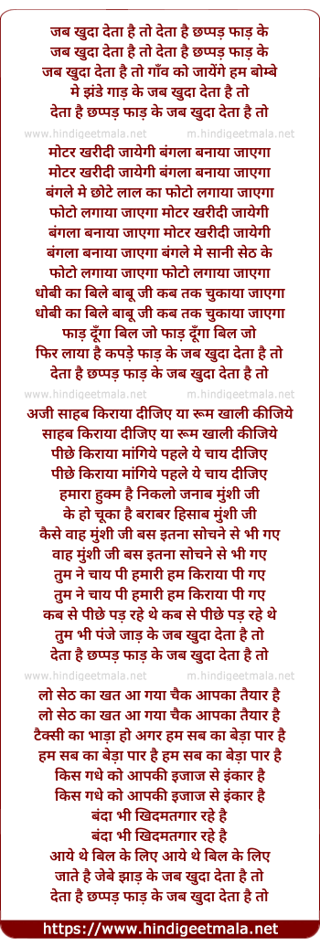 Lyrics of Jab Khuda Deta Hai To - जब खुदा देता है