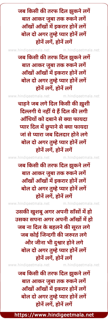 Lyrics of Jab Kisiki Taraf Dil Jhukane Lage - जब किसी की तरफ दिल झुकने लगें