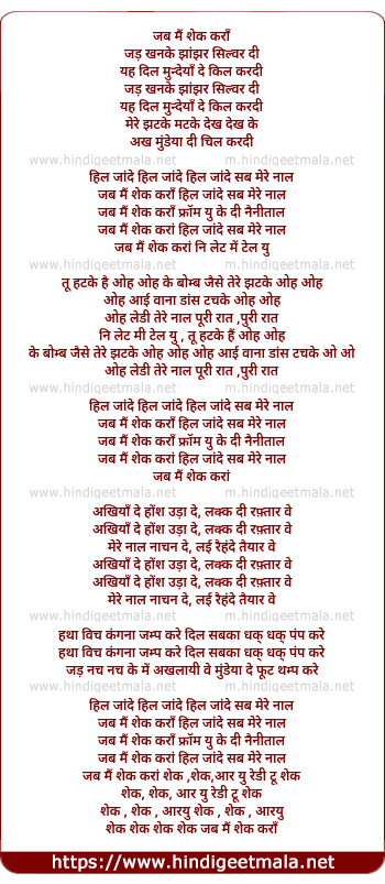 Lyrics of Jab Main Shake Karaan - जब मैं शेक करां