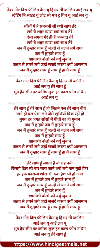 Lyrics of Jab Main Tumhare Saath Hun - जब मैं तुम्हारे साथ हूँ