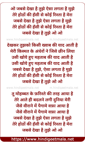 o jabse dekha hai tujhe aisa lagta hai mujhe