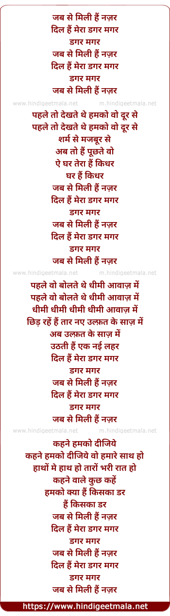 Lyrics of Jab Se Mili Hai Nazar - जब से मिली हैं नज़र