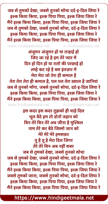 Lyrics of Jab Se Tumko Dekha, Jabse Tumko Socha - जब से तुमको देखा, जबसे तुनको सोचा