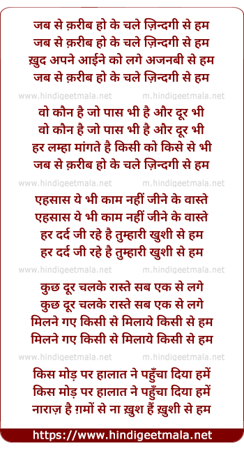 Lyrics of Jabase Karib Ho Ke Chale - 2 - जबसे क़रीब हो के चले