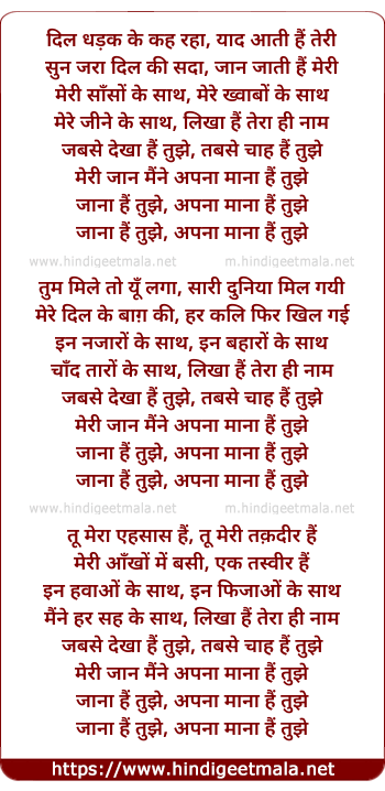Lyrics of Jabse Dekha Hai Tujhe - दिल धड़क के कह रहा, याद आती हैं तेरी