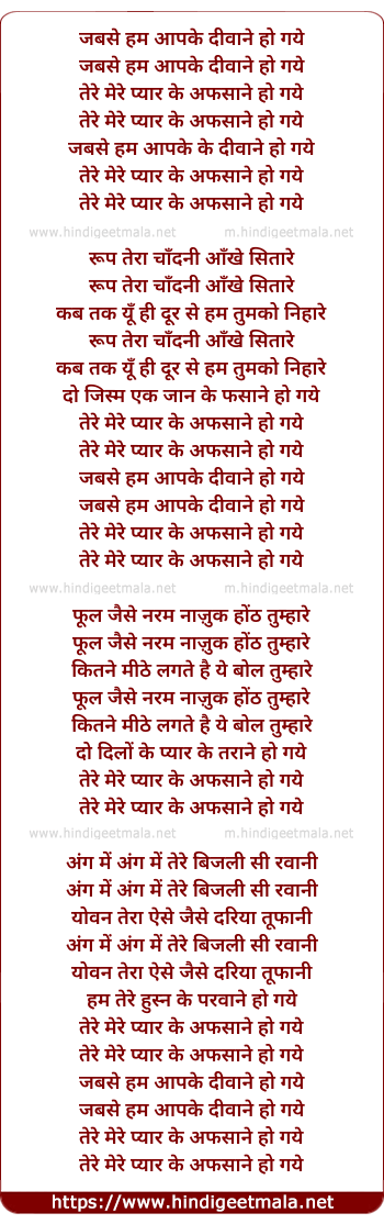 Lyrics of Jabse Hum Aapke - जबसे हम आपके
