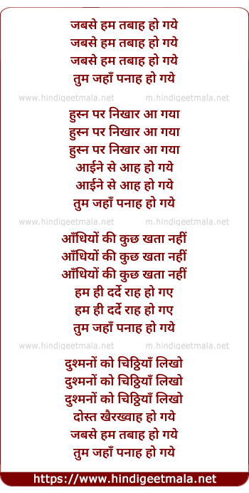 Lyrics of Jabse Hum Tabaah Ho Gae - जबसे हम तबाह हो गये