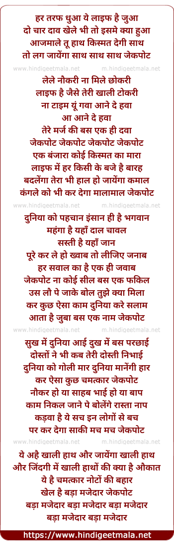 Poetic Translation - Lyrics of Jackpot (Title) - जेकपोट