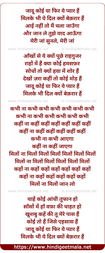 Lyrics of Jadu Koi - जादू कोई या फिर ये प्यार हैं