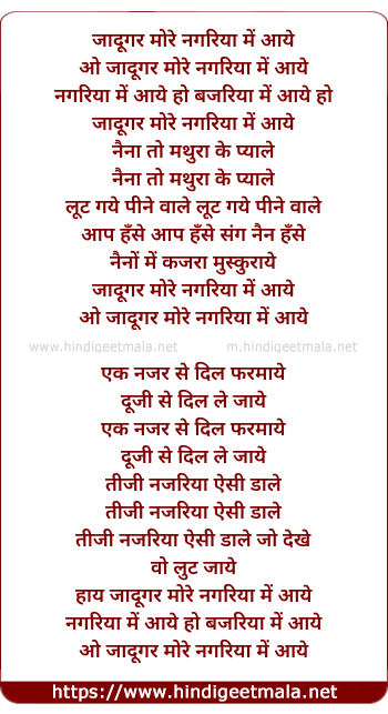 Lyrics of Jadugar Mori Nagariya Me Aaye - जादूगर मोरे नगरिया में आये